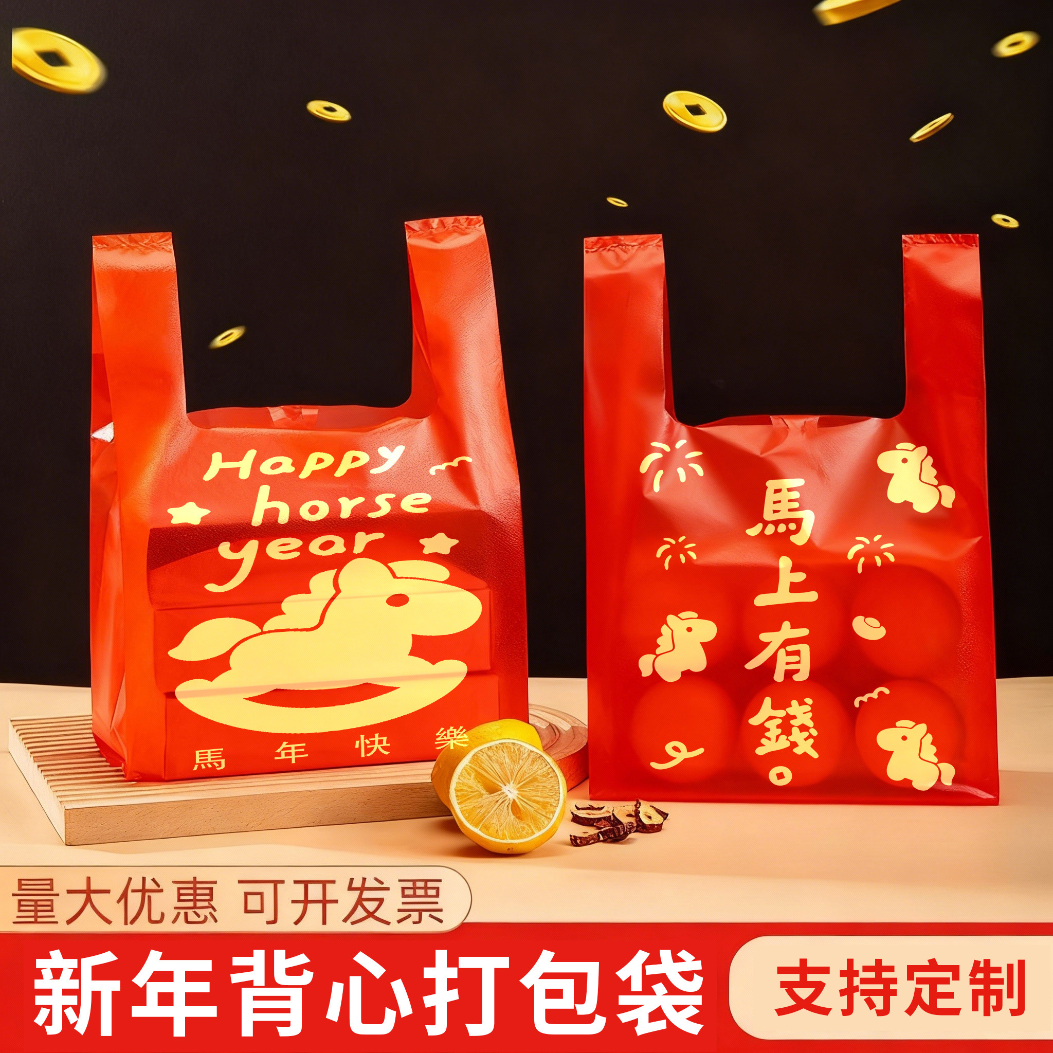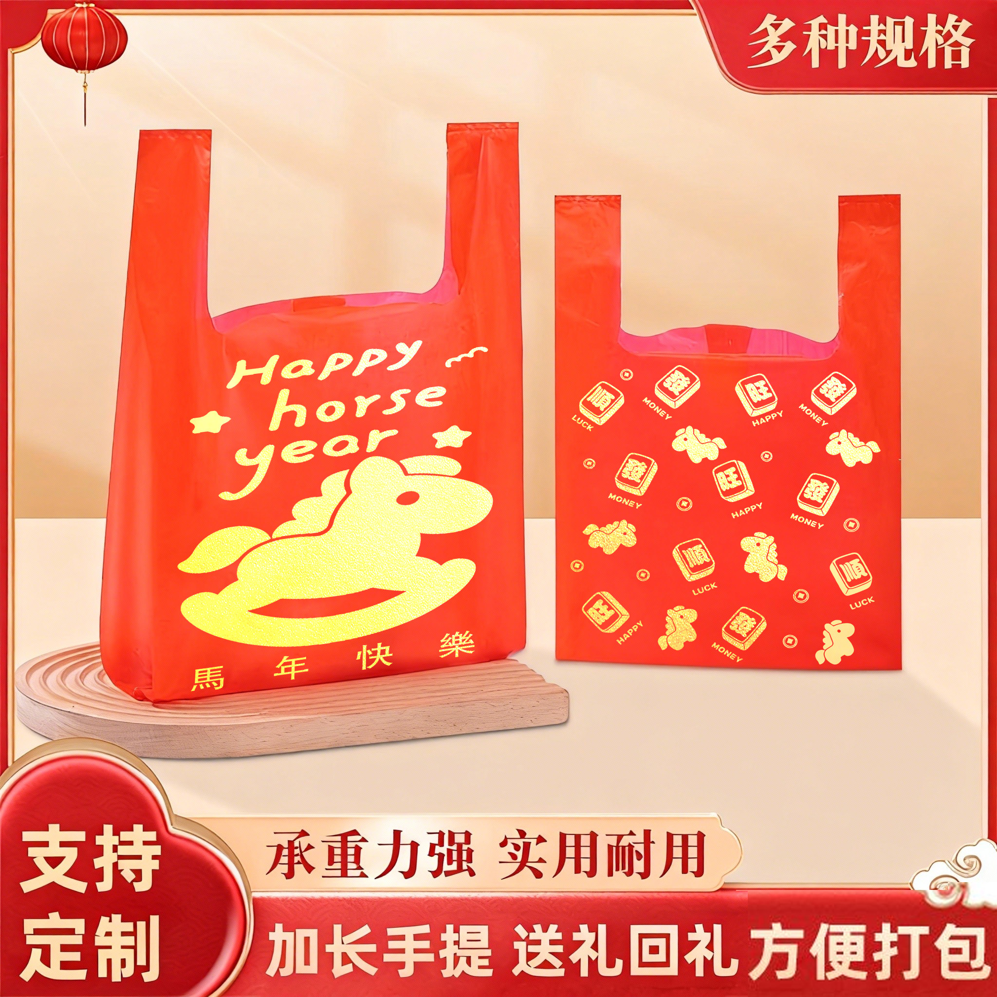 马年红色塑料袋加厚2026新款烫金过年喜庆商场超市礼品手提袋批发
