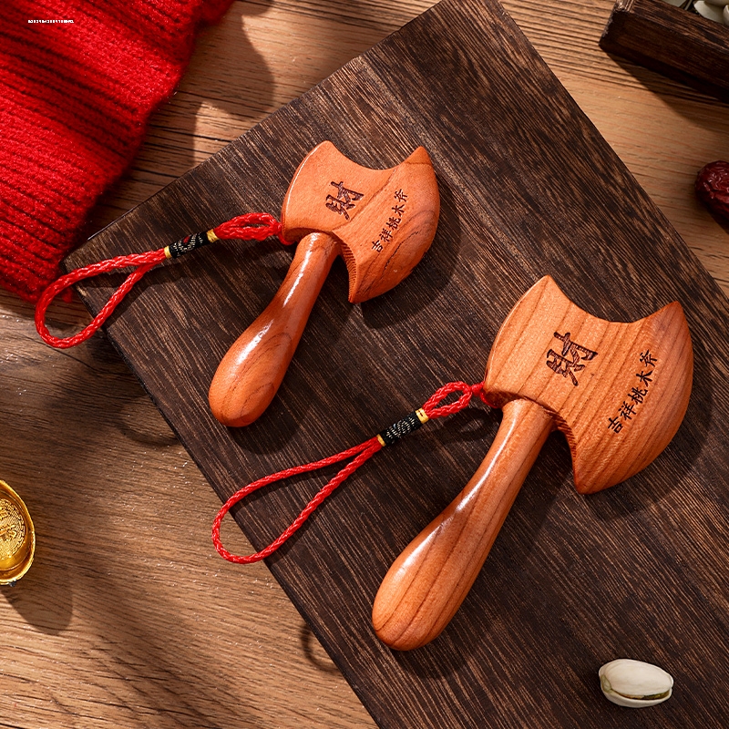 桃木斧子挂件小斧头木雕结婚坐福家居门口搬家乔迁客厅摆件压门斧