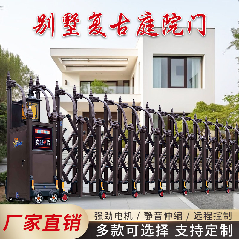 电动伸缩门铝合金别墅复古门电动大门学校工厂小区别墅庭院大门