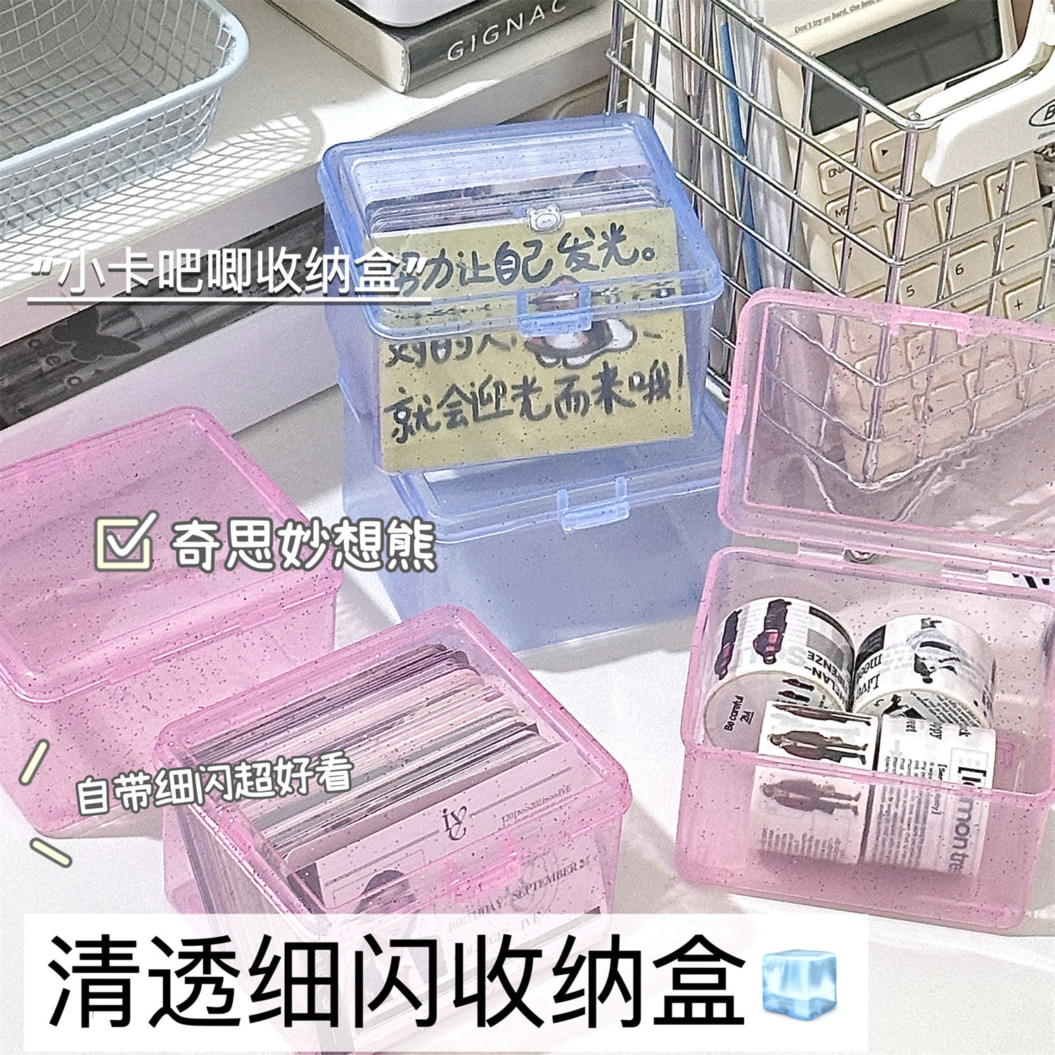 细闪透明带盖收纳盒高颜值ins桌面小卡手账多功能防尘收纳整理盒