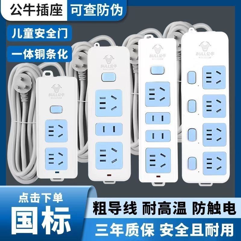 公牛插排插线板家用开关多孔宿舍拖线板插排带线延长线排插电插板