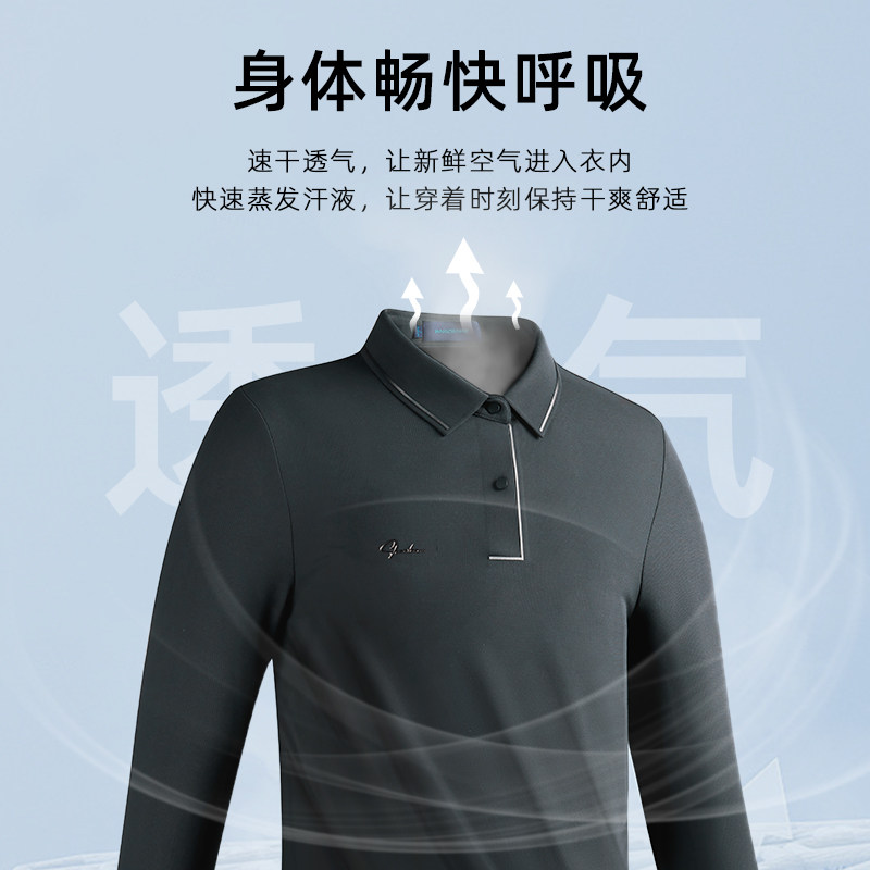 杉杉男士长袖t恤polo衫男装上衣2024春秋季新款爸爸翻领商务休闲