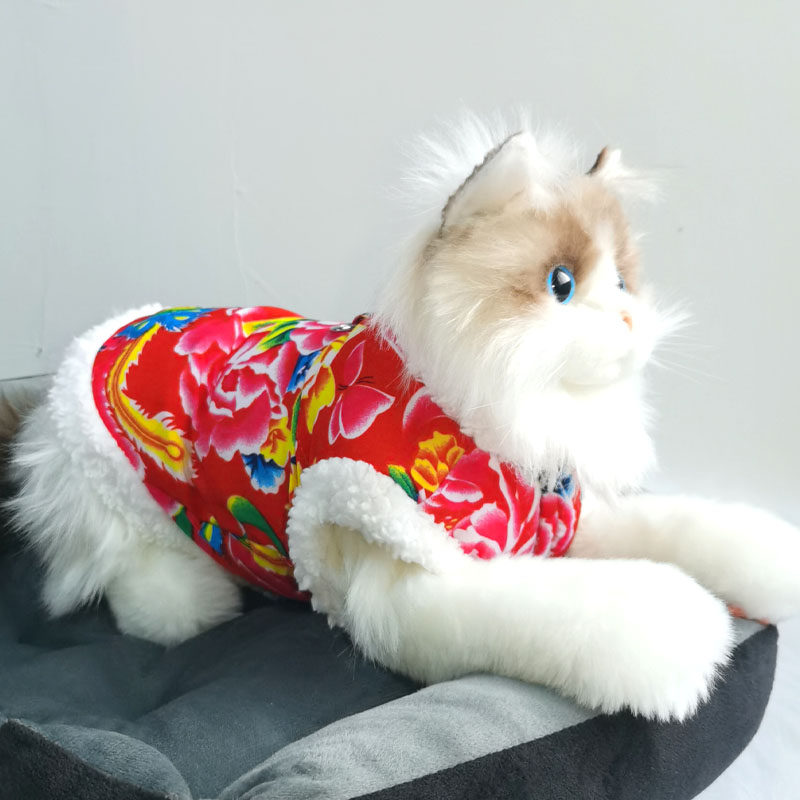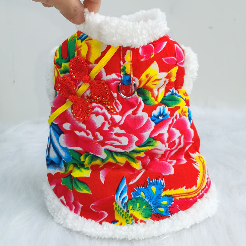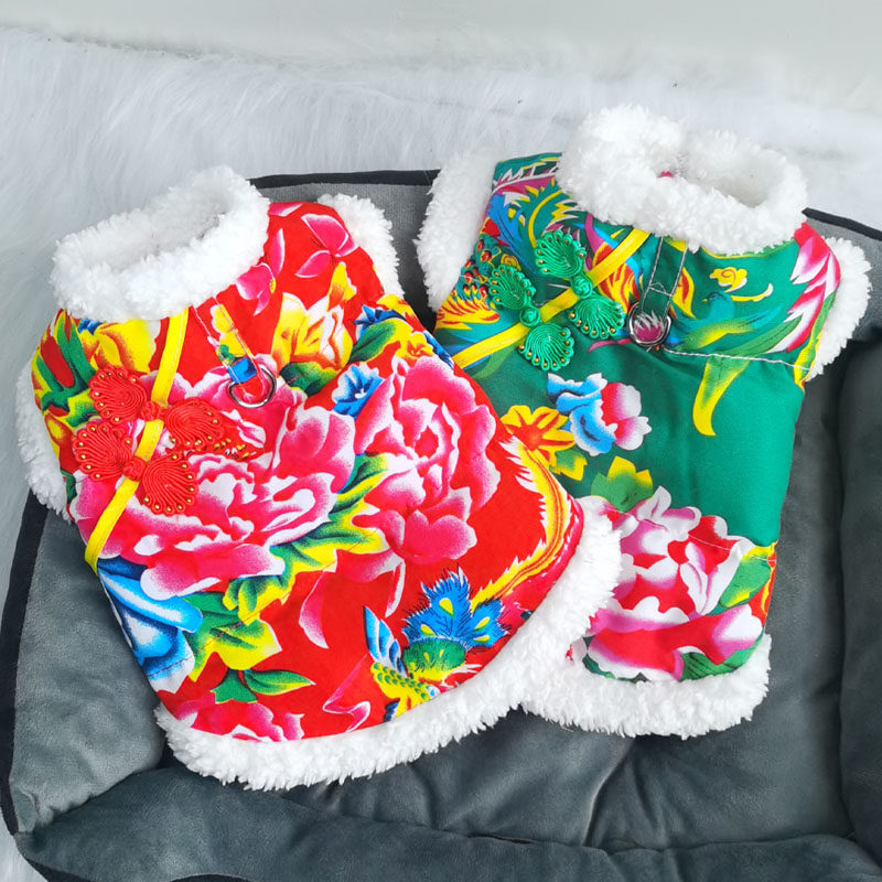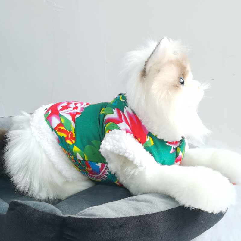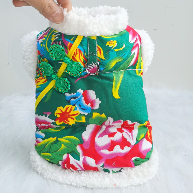 宠物东北大花袄小狗猫咪衣服秋冬季带牵引加厚保暖棉衣泰迪雪纳瑞