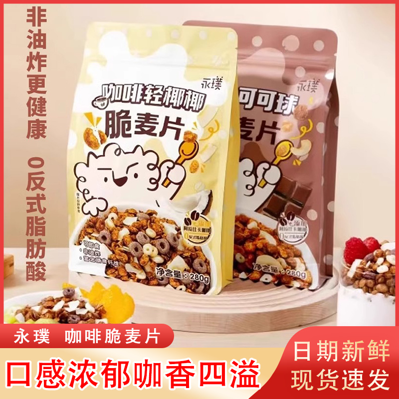永璞咖啡香浓脆麦片轻椰椰可可球即食冲饮休闲零食代早餐280g袋装