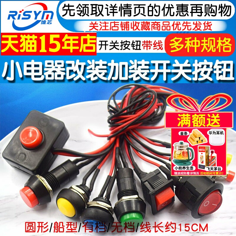 开关按钮小开关小型按键汽车自锁无锁自复位迷你圆形微型船型带线