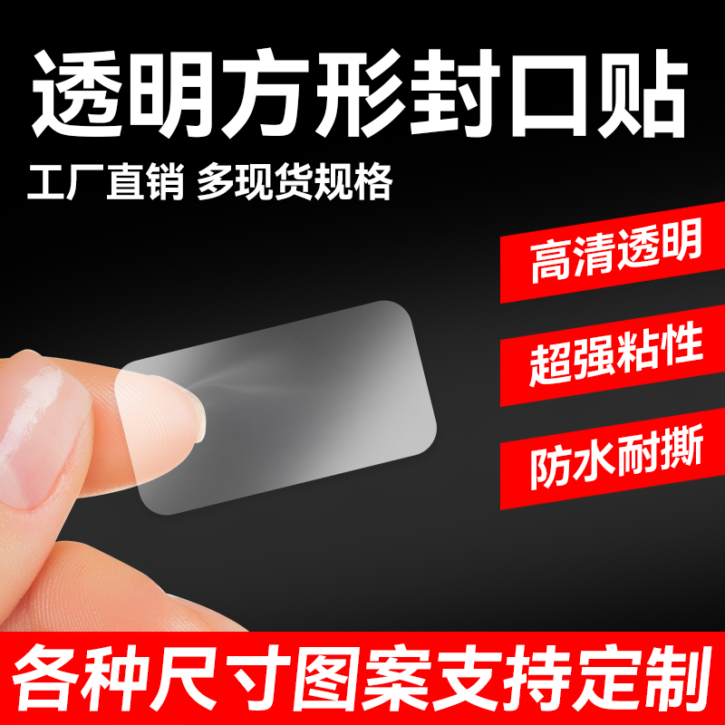 透明封口贴长方形不干胶标签贴纸5丝盒子彩盒封口标防水加厚现货