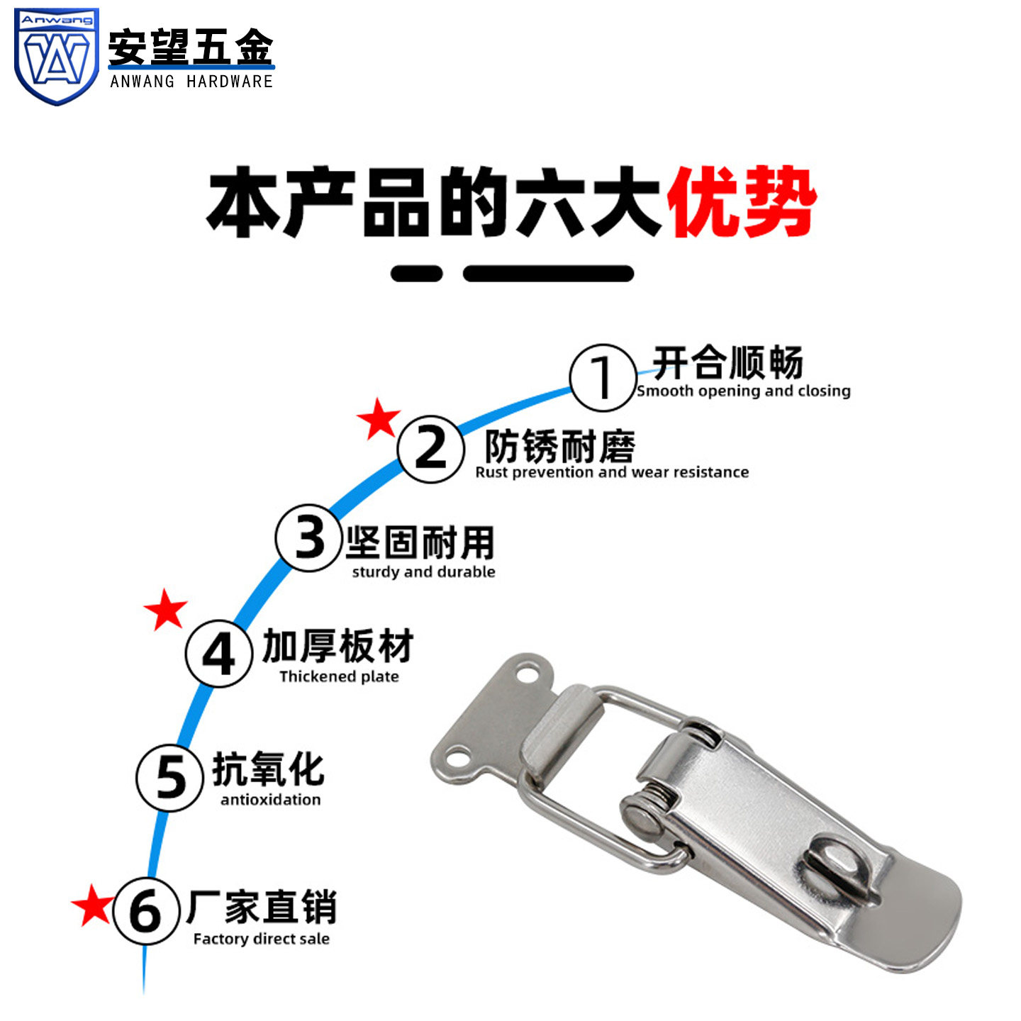 不锈钢弹簧搭扣鸭嘴扣锁扣箱包装箱金属扣铁镀彩加厚带锁弹簧扣