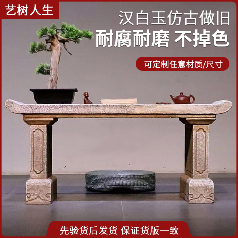 石雕条案汉白玉做旧香案祠堂供桌玄案台石头神台玄关台供桌装饰品