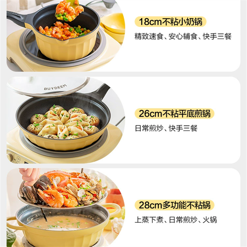 北鼎18CM小奶锅宝宝辅食锅婴儿煎煮一体锅不粘锅家用汤泡面锅