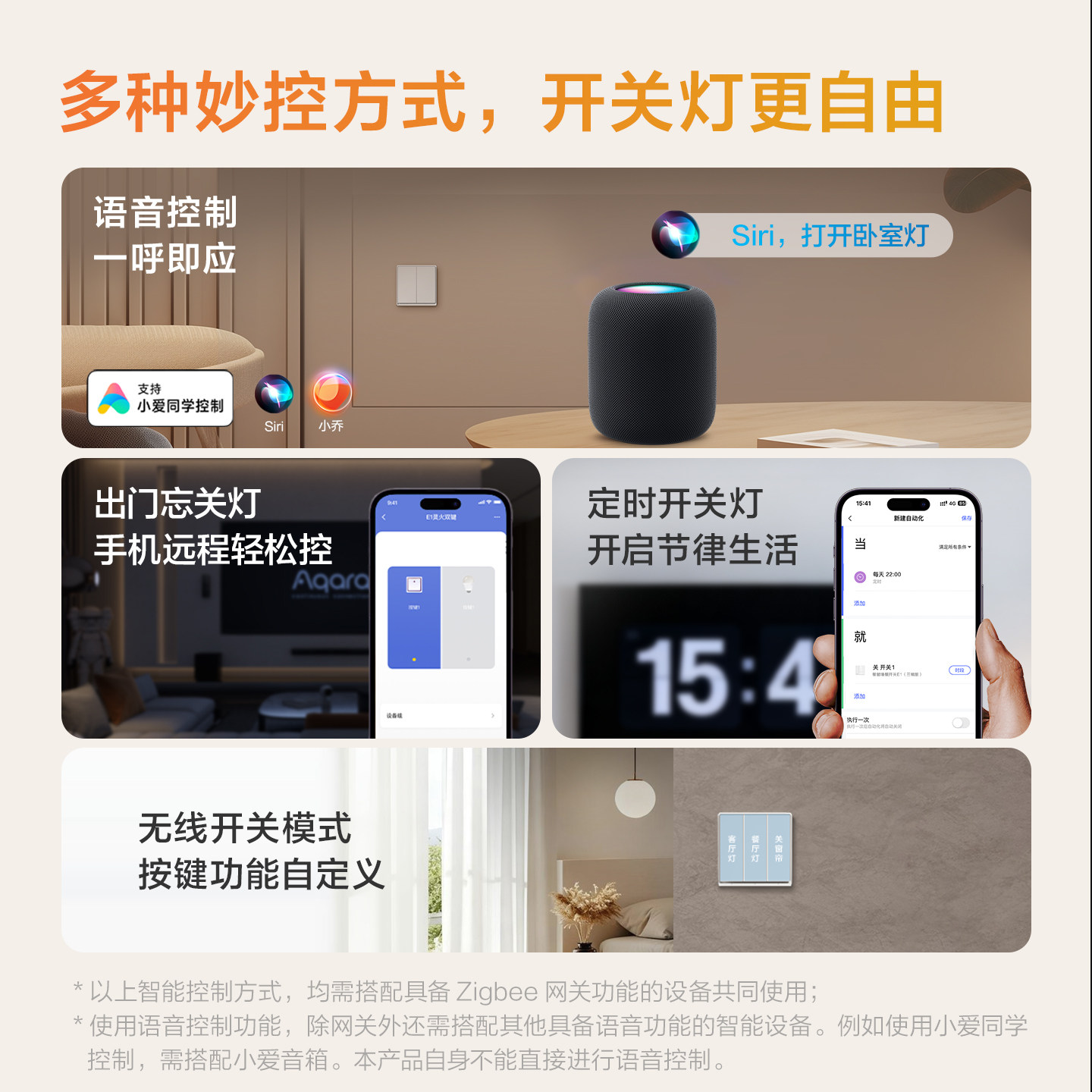 Aqara绿米联创智能墙壁开关E1已接入米家HomeKit全屋智能控制面板