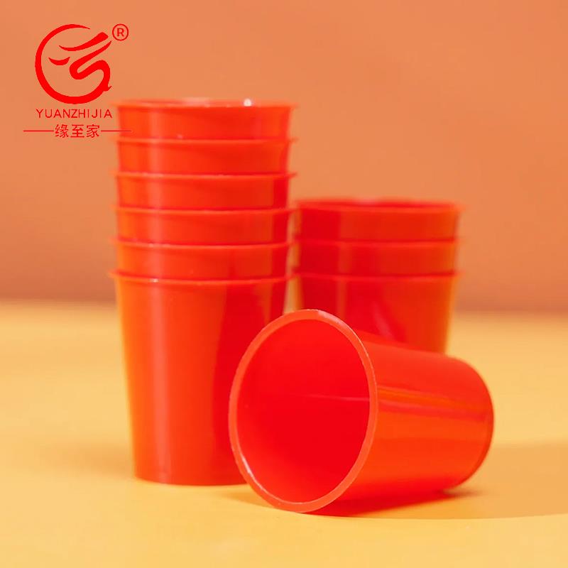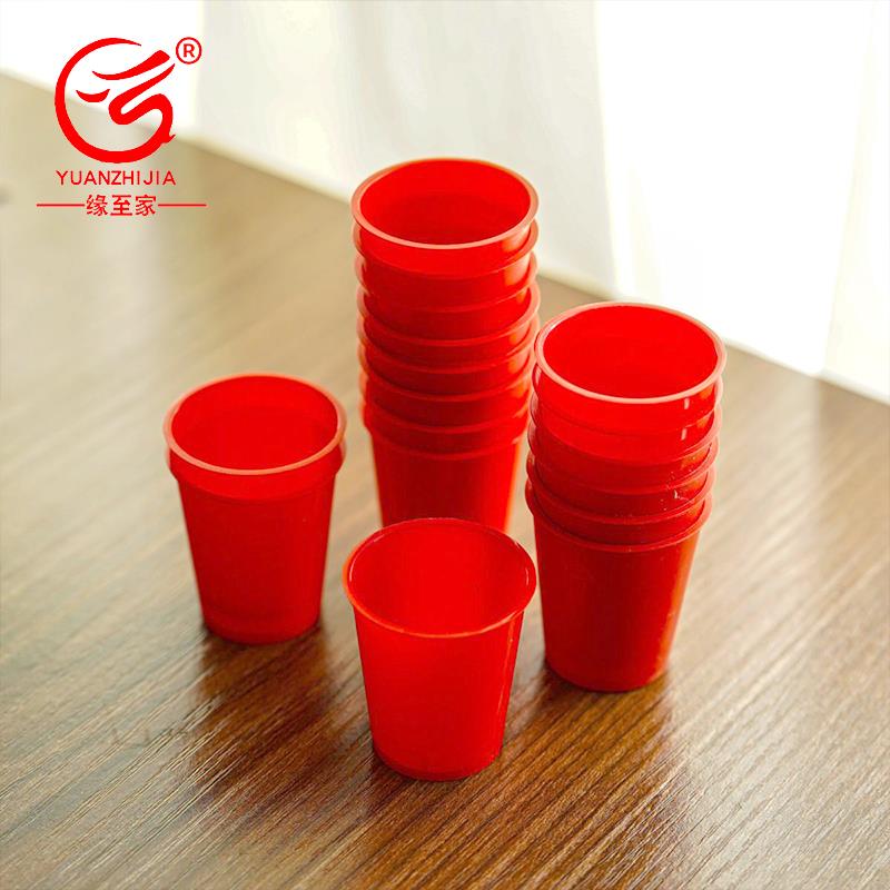 一次性红色小酒杯环保塑料小号婚庆加厚白酒杯敬酒杯品尝杯餐饮具