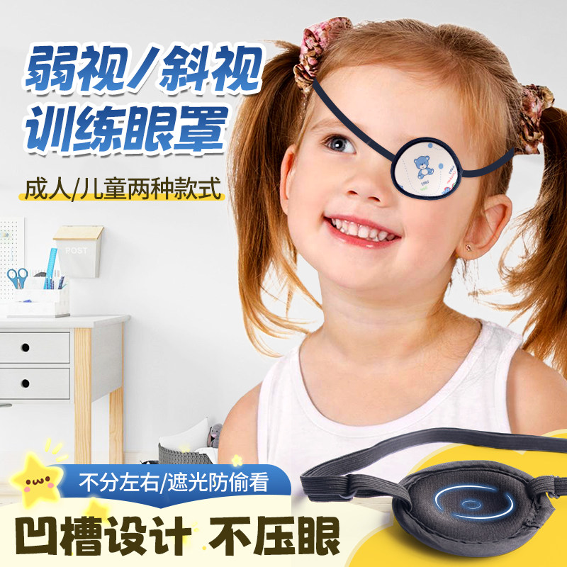 弱视眼罩单眼成人儿童独眼罩全遮盖矫正斜视遮光海盗单眼罩