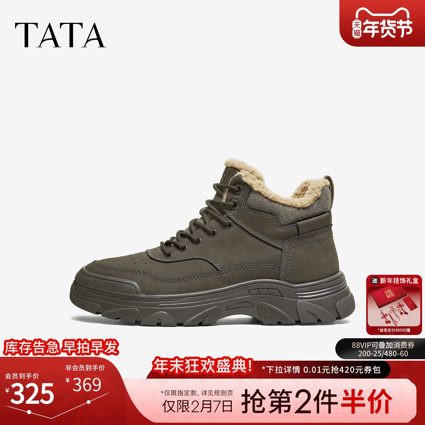 TATA他她男鞋2026春季加绒时装靴百搭保暖工装靴新款靴子QJS01DD5