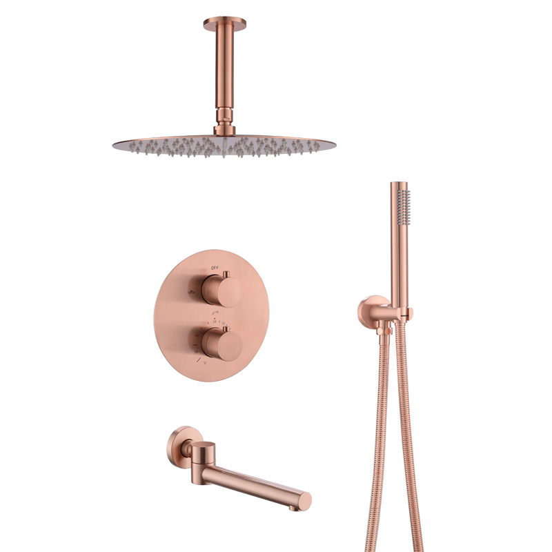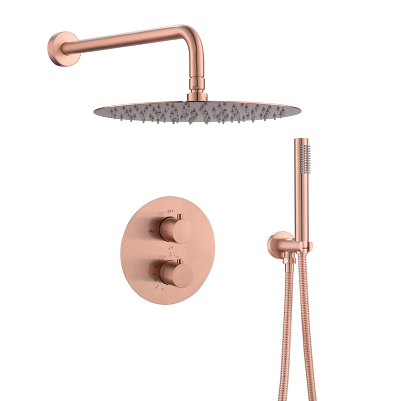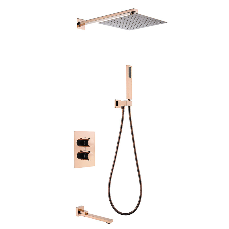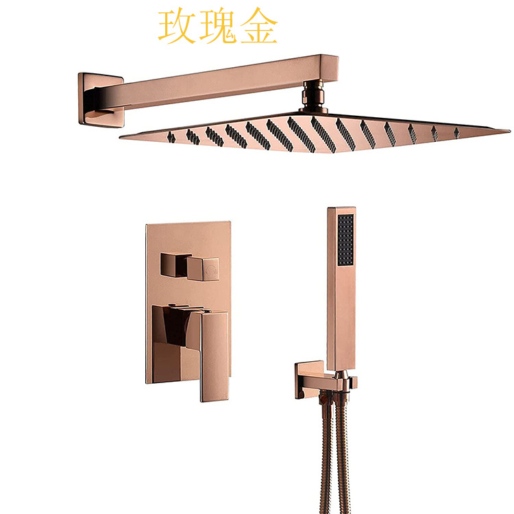 YJB暗装花洒入墙式淋浴器套装卫浴时尚玫瑰金铜10寸喷头家装主材
