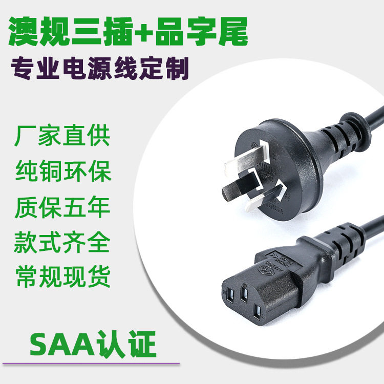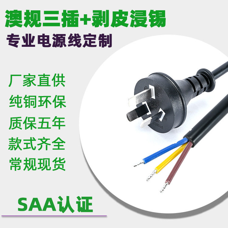 澳规澳标三插剥皮上锡A澳洲认证插头连接线电脑电源线A插座