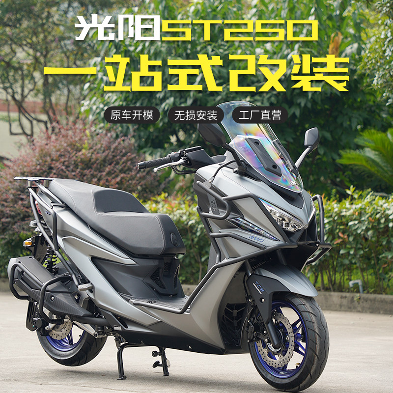 适用光阳赛艇ST250保险杠前后全包围护杠排气护杠改装后货架尾架