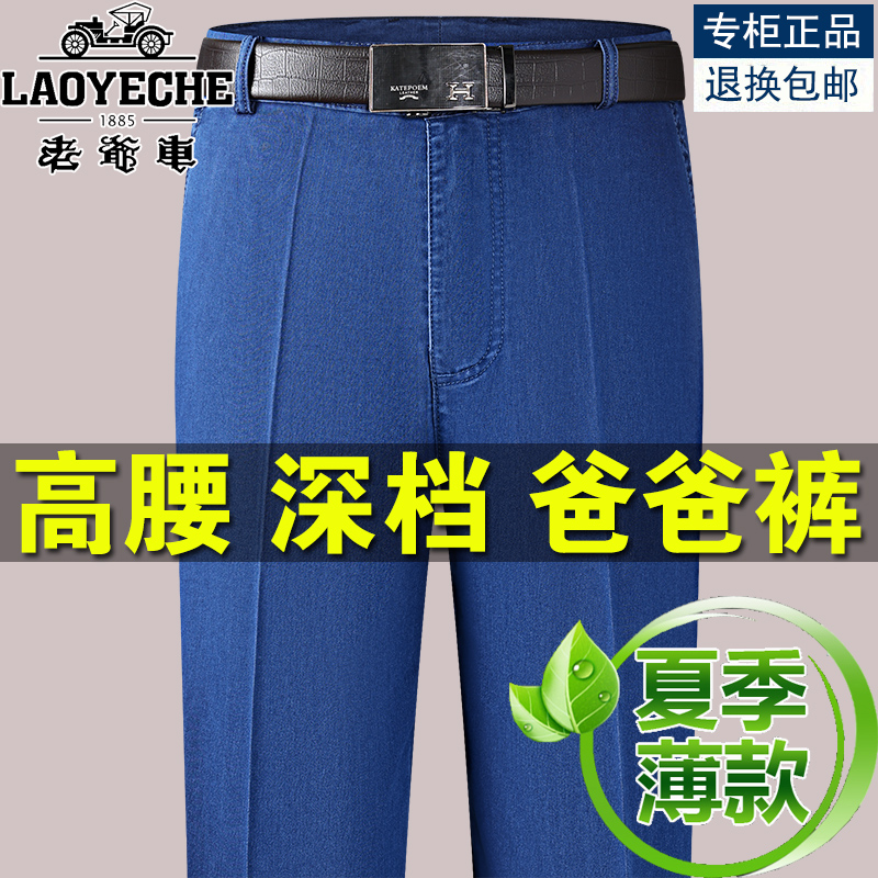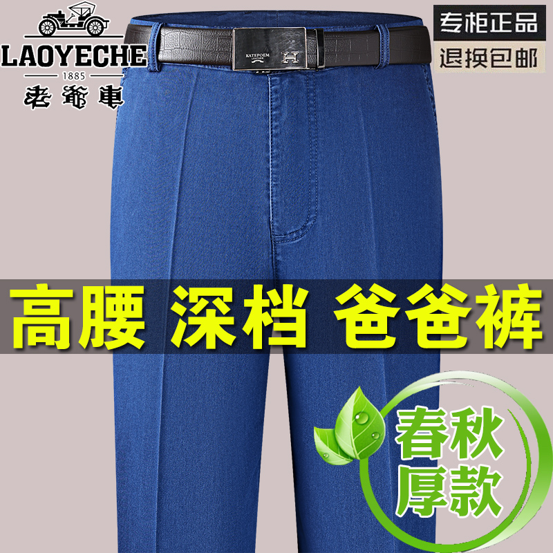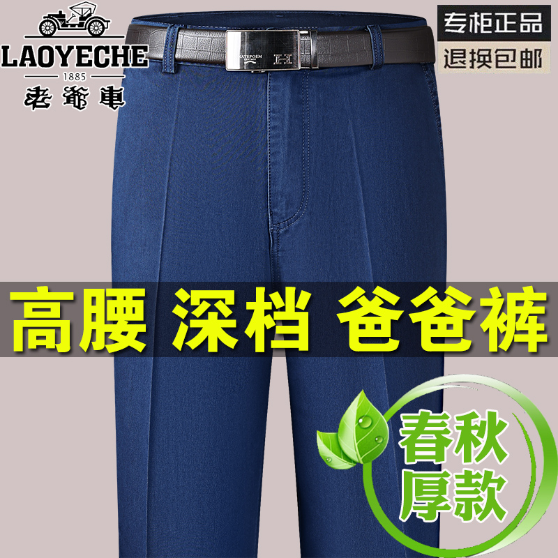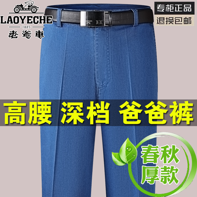 老爷车男士牛仔裤秋冬宽松高腰直筒男裤爸爸装中老年弹力休闲长裤