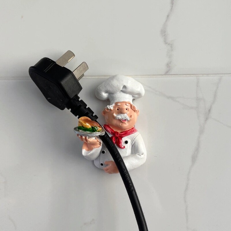 ins可爱卡通电源线收纳架树脂厨师插头挂钩强力粘钩创意整理收纳
