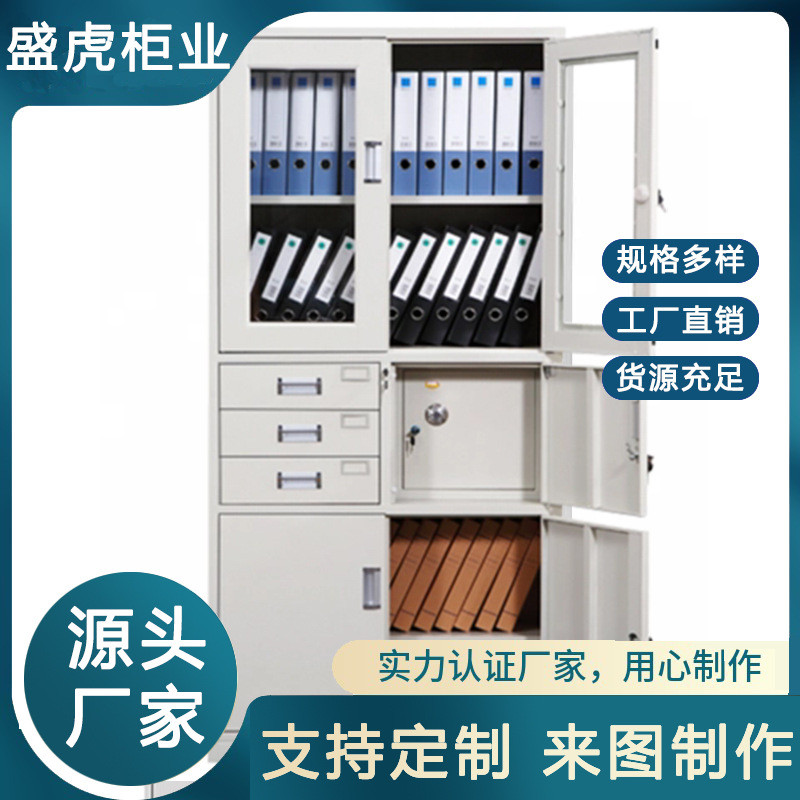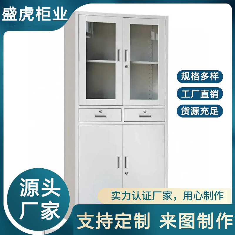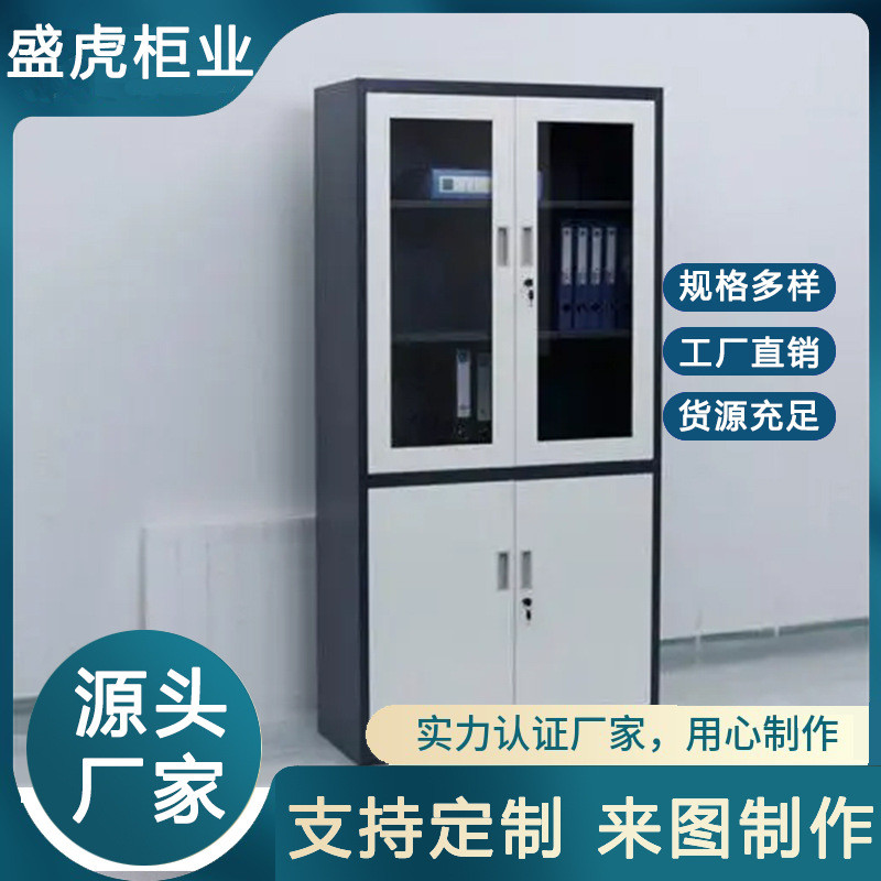 钢制办公室玻璃门文件柜铁皮储物资料档案柜带锁商业办公家具柜