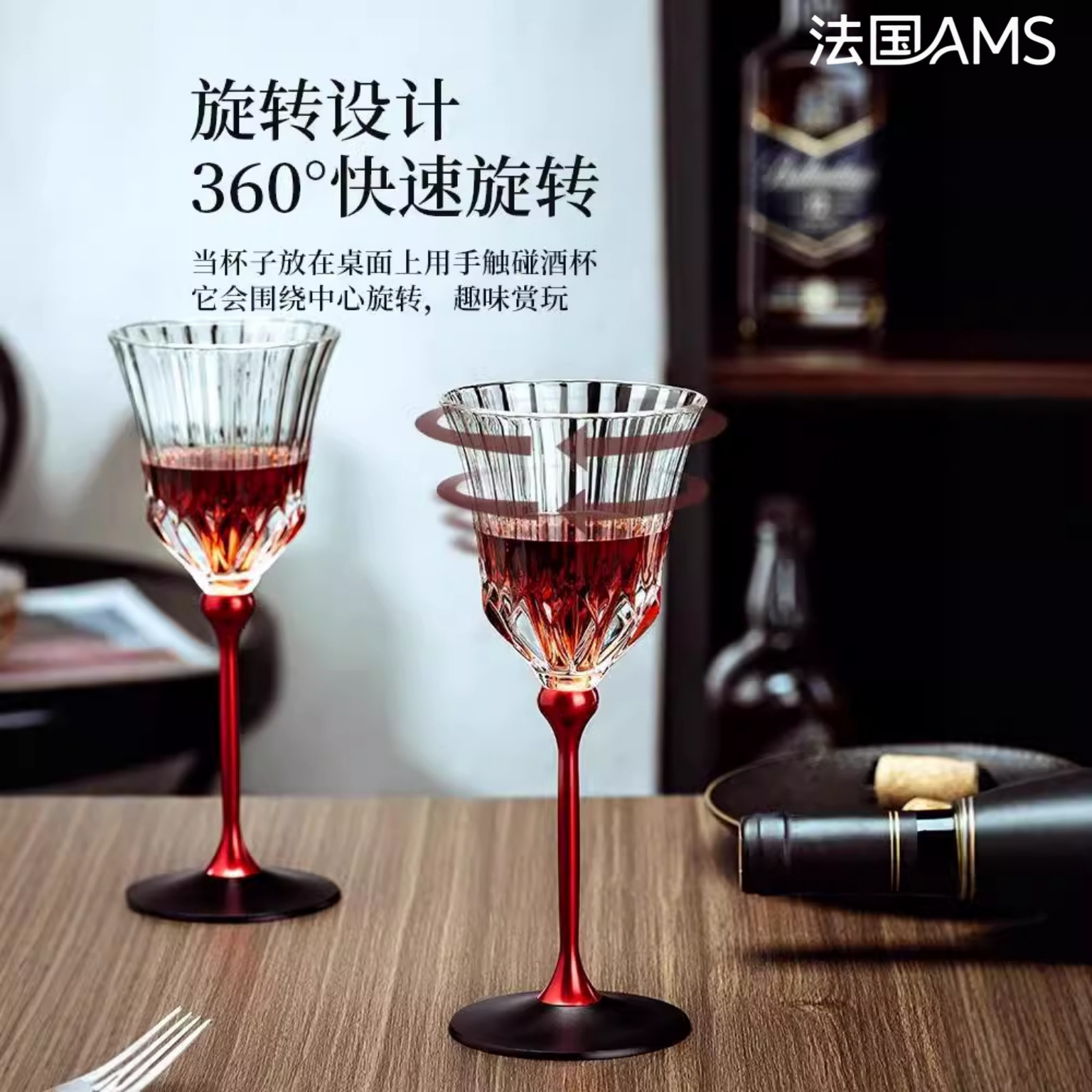法国红酒杯套装360°旋转家用高级感合金葡萄酒高脚杯子礼盒送礼