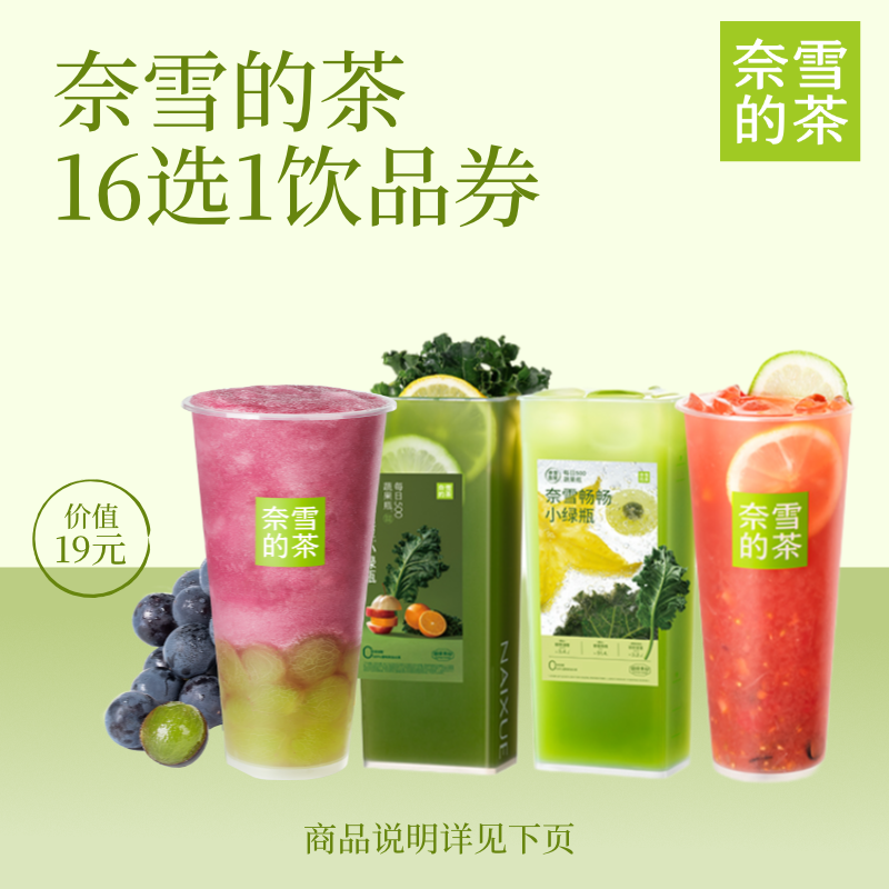 【下拉详情页领补贴】奈雪的茶16选1代金券 奶茶果茶通兑劵优惠券