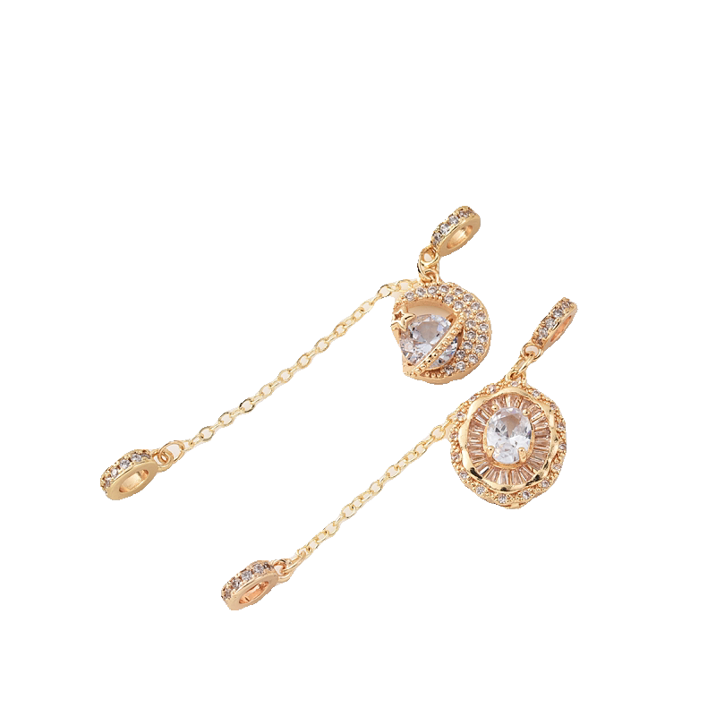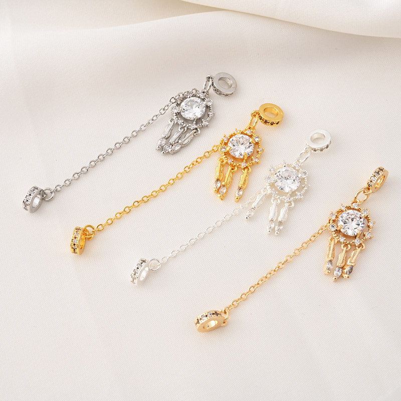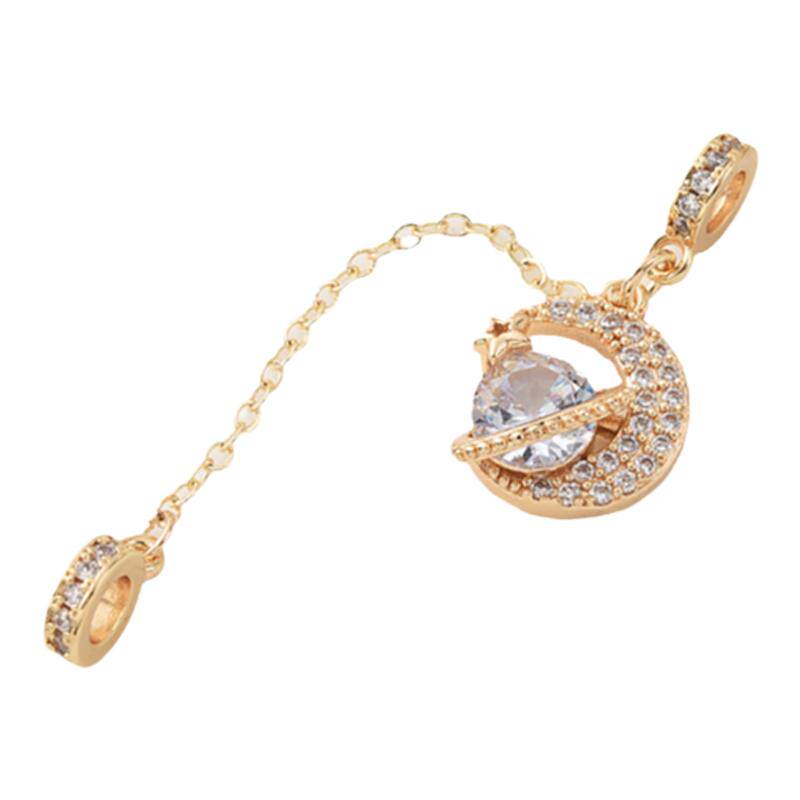 14K包金微镶锆石安全链月亮吊坠手作diy吊饰装饰链隔珠首饰配件