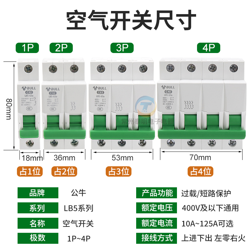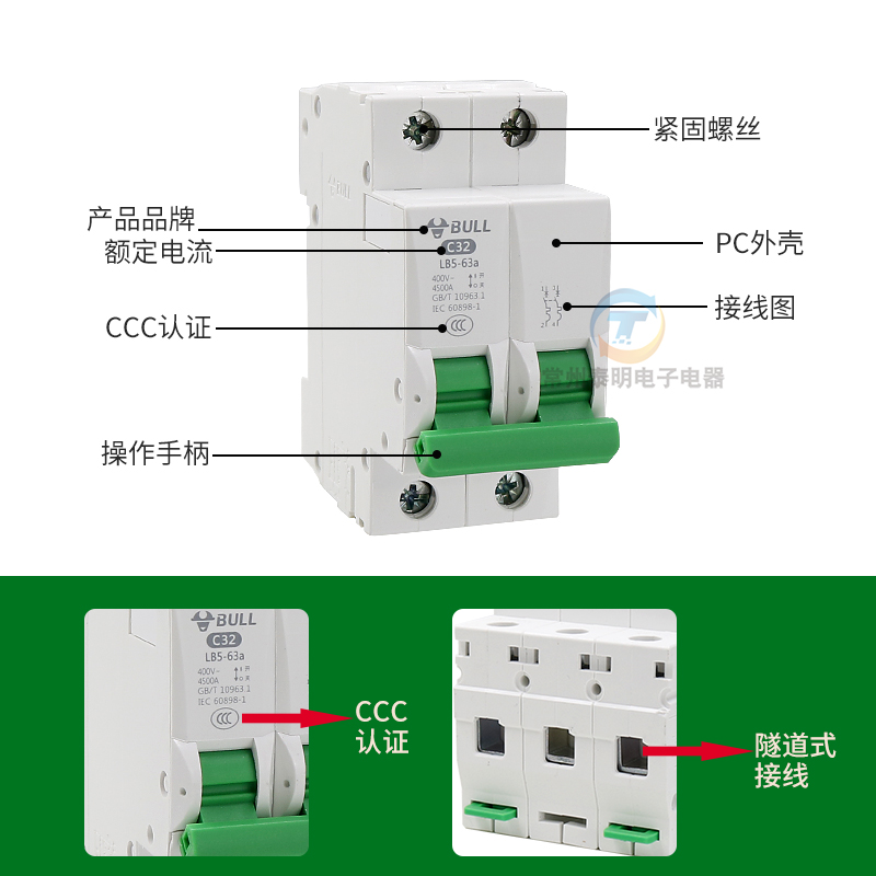 公牛空气开关LB5-63a家用空开2p小型断路器1P空调总闸 DZ47 3P 4P