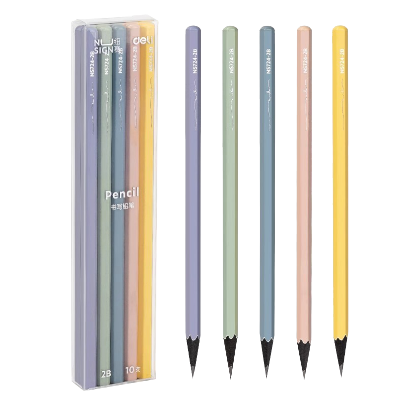 得力纽赛铅笔小学生无铅毒2b笔hb2比考试二年级学生专用黑色文具儿童超黑撞色彩杆无毒一年级考试答题卡用品