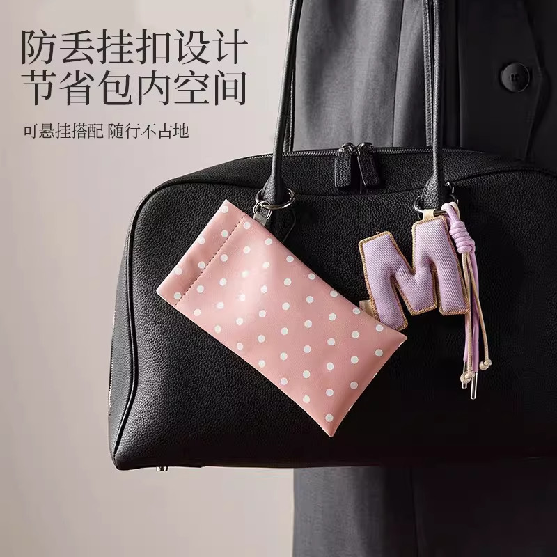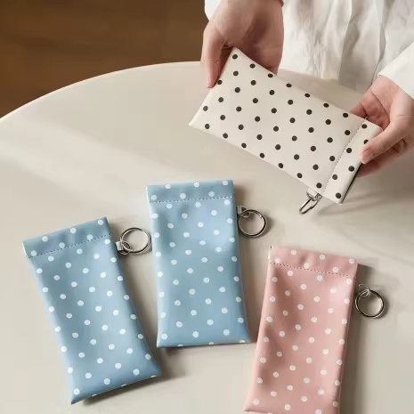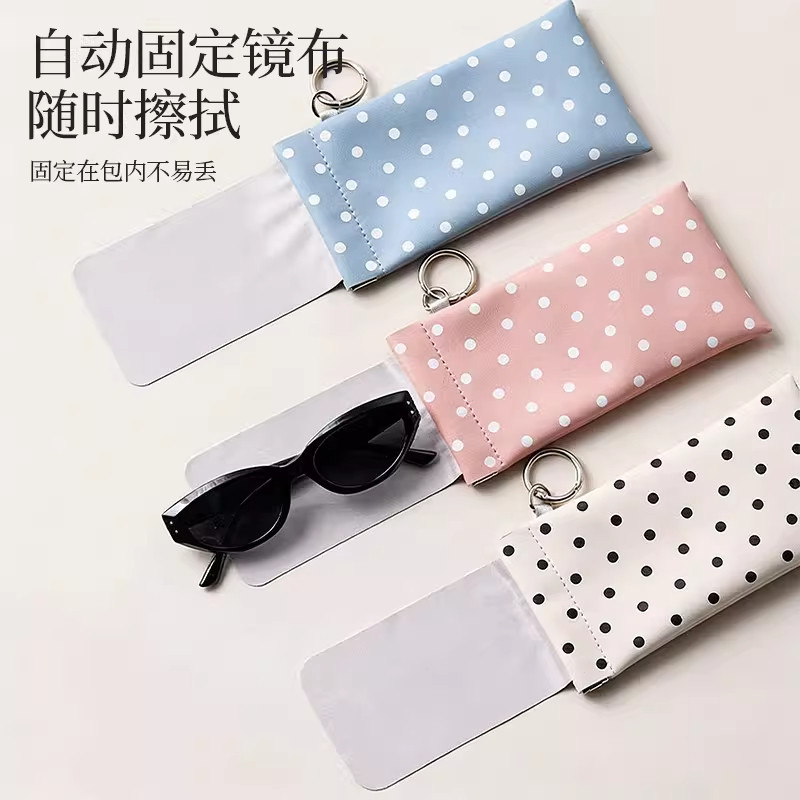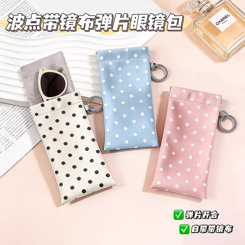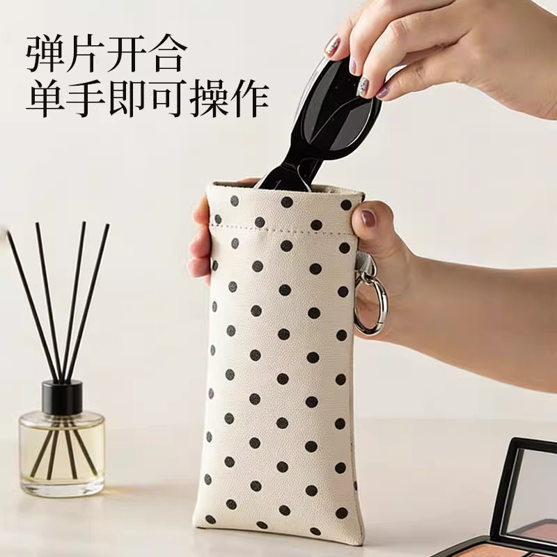 便携眼镜收纳袋时尚波点随身挂包墨镜整理袋自动闭合弹片收纳盒