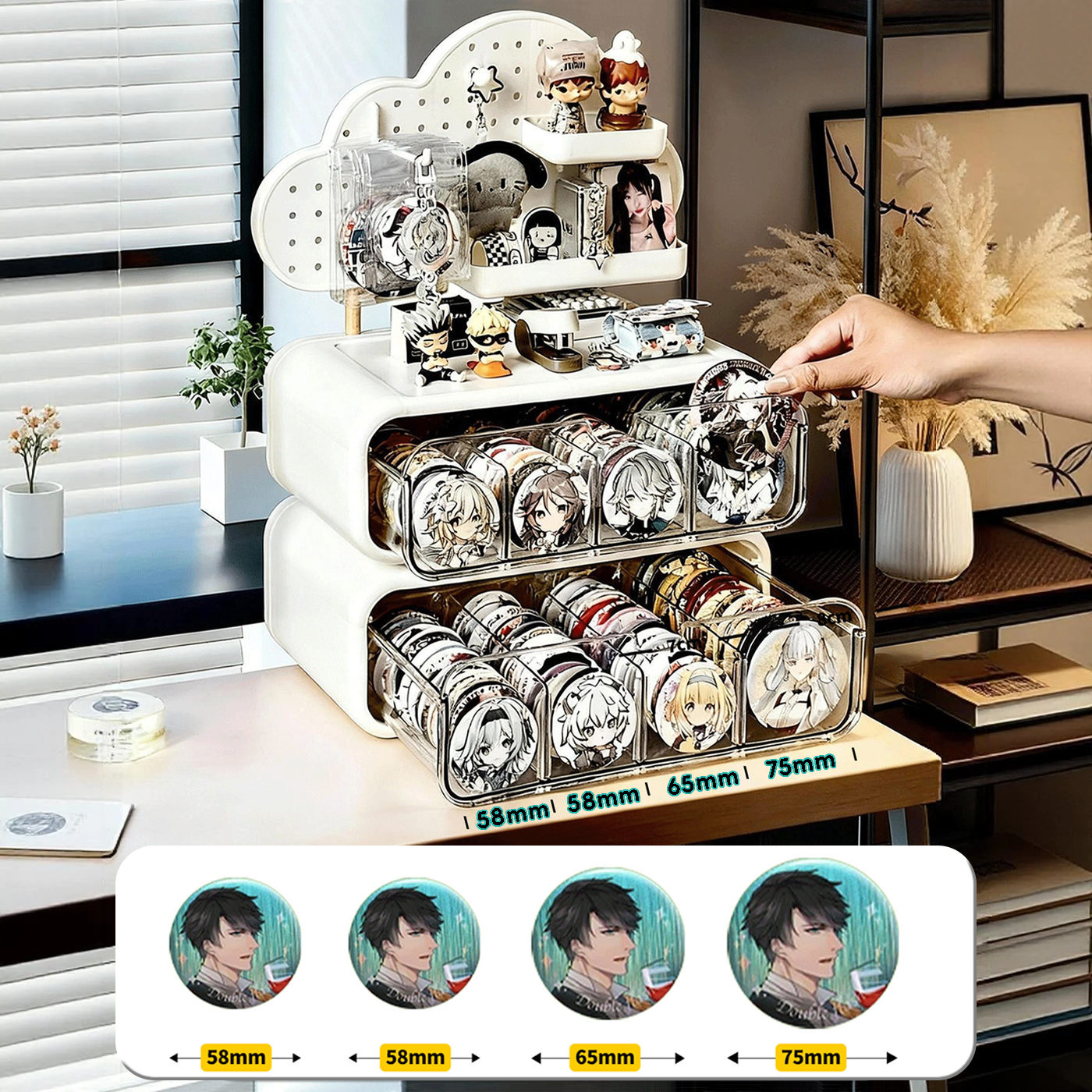 吧唧收纳盒分格防尘抽屉式勋章展示盒动漫周边谷子徽章整理置物架