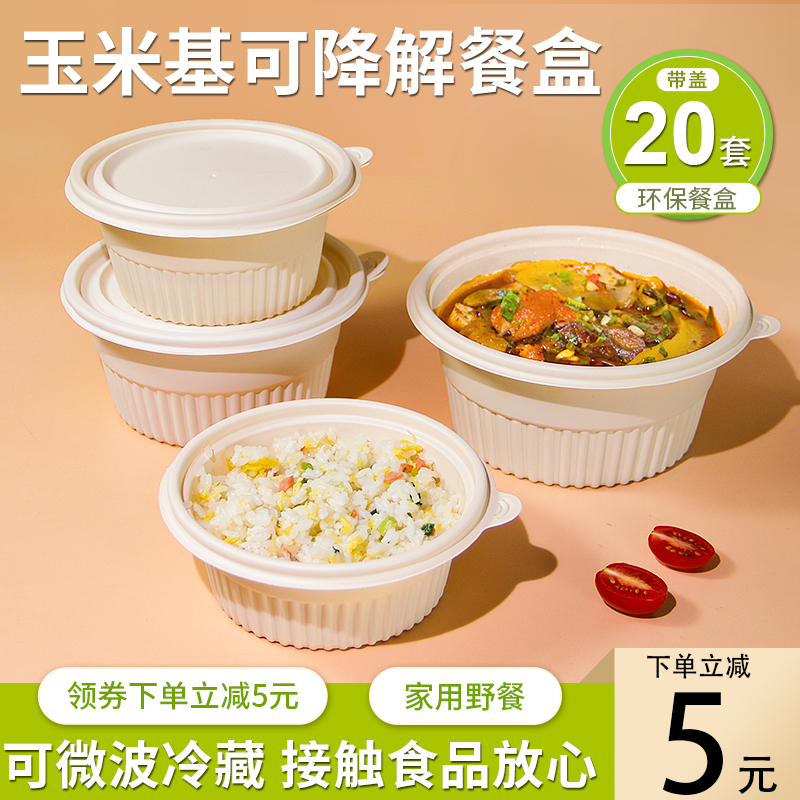 可降解一次性餐盒玉米淀粉基家用野餐具露营打包盒水果饭盒可微波