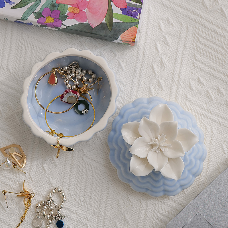 非遗陶瓷手捏花朵首饰盒储物罐饰品戒指项链盒收纳盒桌面摆件送礼
