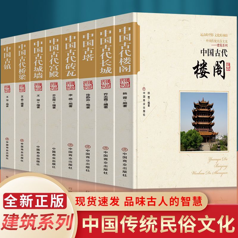 全八册 中国古代砖瓦+长城+桥梁+古镇+宫殿+古塔+楼阁+城墙 中国传统民俗文化建筑系列瓦当的发展历程历史书籍