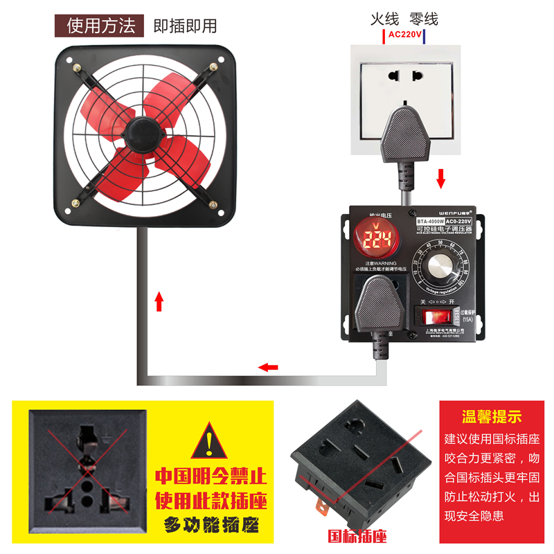 4000W大功率可控硅电子调压器电机风扇电钻变速调速器调温器220V