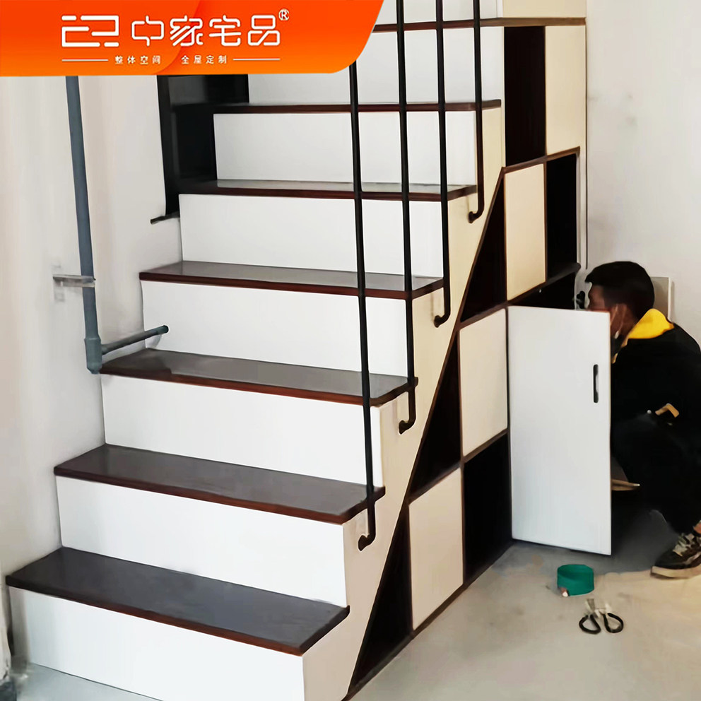原创设计复式阁楼私人定制整体楼梯转角楼梯定做梯下储物衣柜鞋柜