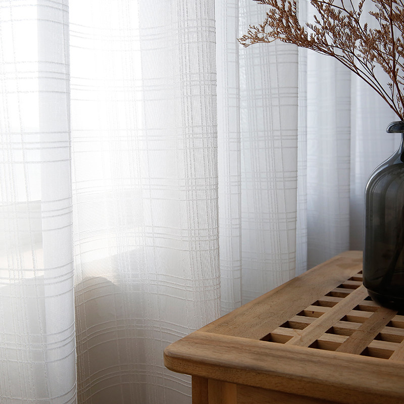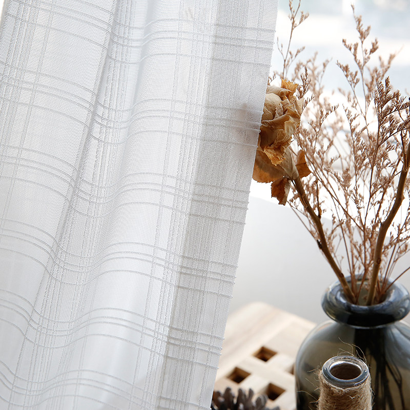 简约现代白色窗帘窗纱遮光防晒通风阳台纱帘布卧室飘窗落地窗定做