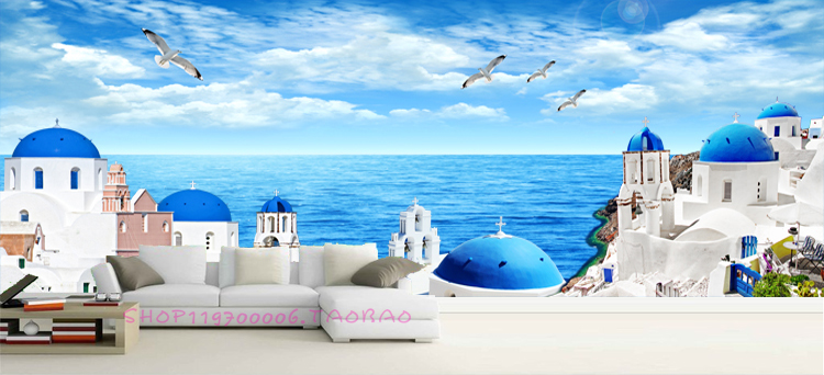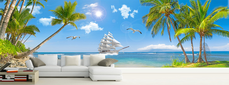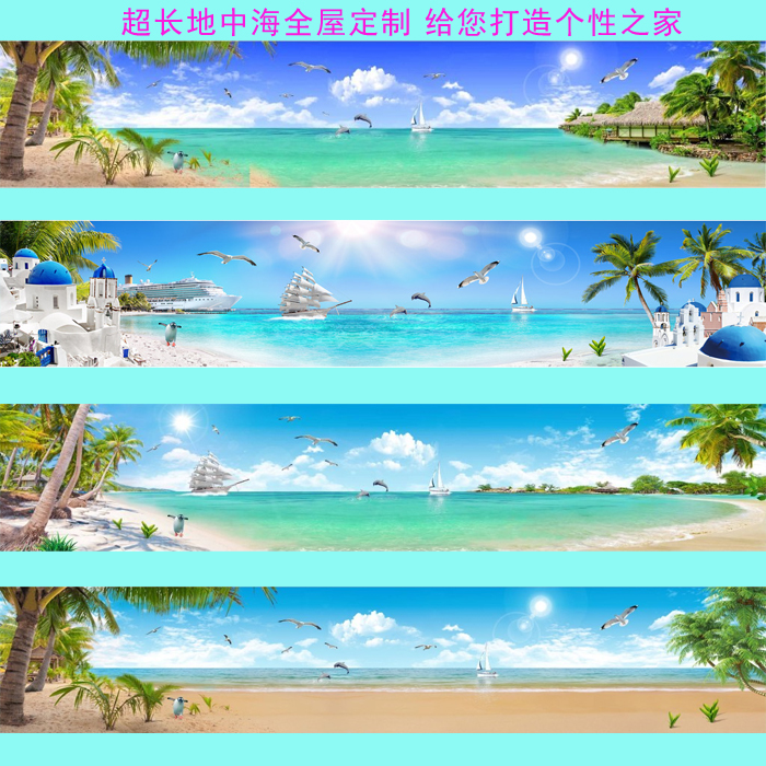 3d客厅电视背景墙全屋定制墙贴装饰画无缝长款海景沙发墙壁画墙纸