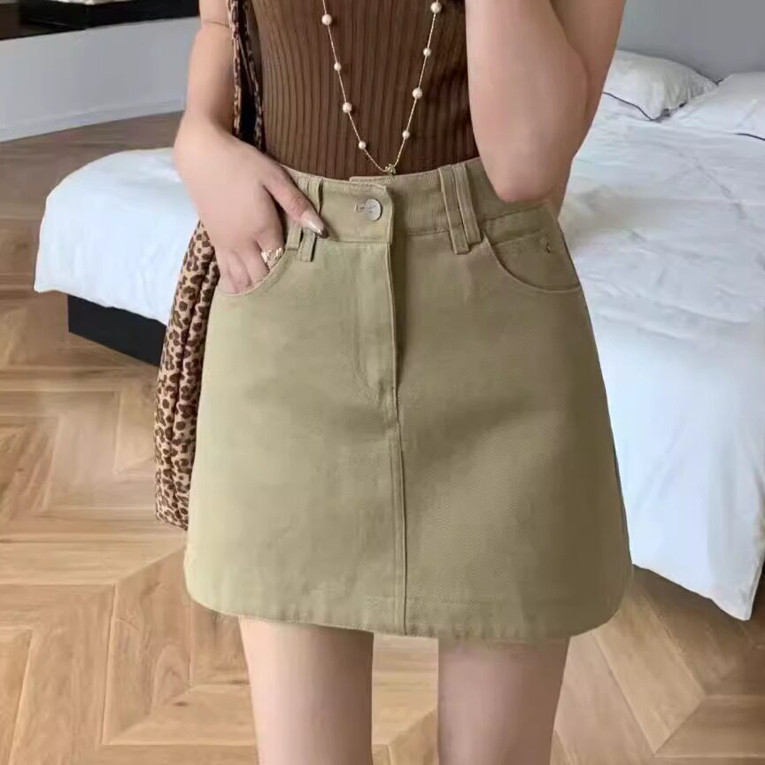 双口袋秋装半身裙女高腰宽松显瘦a字裙百搭休闲简约女士短裙
