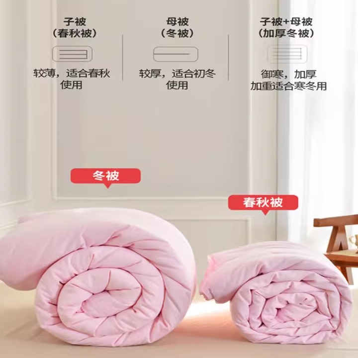 特价蚕丝大豆纤维子母被二合一拉链款棉被芯四季通用加厚保暖冬被