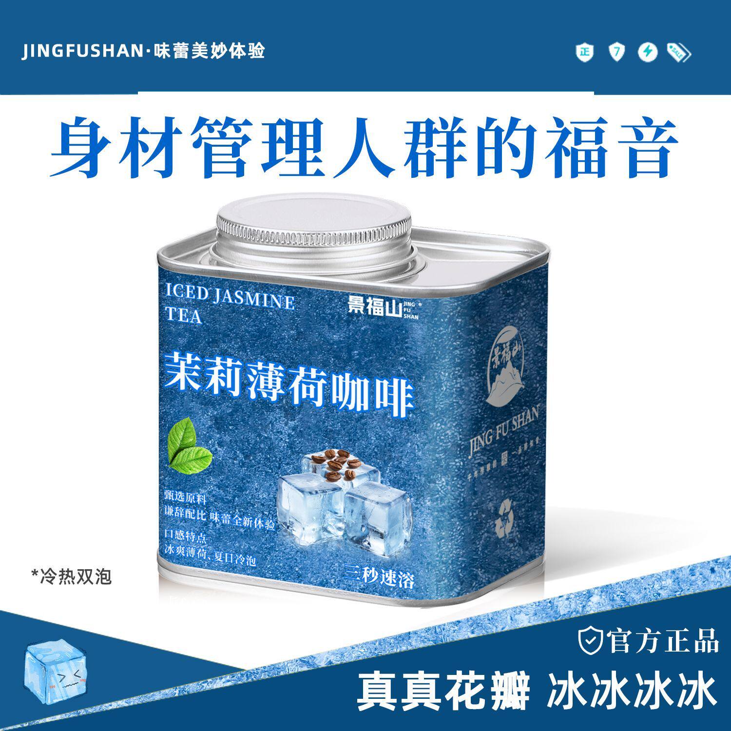 景福山薄荷冰吸美式黑咖啡速溶0脂0蔗糖茉莉花茶叶代用花草茶130g