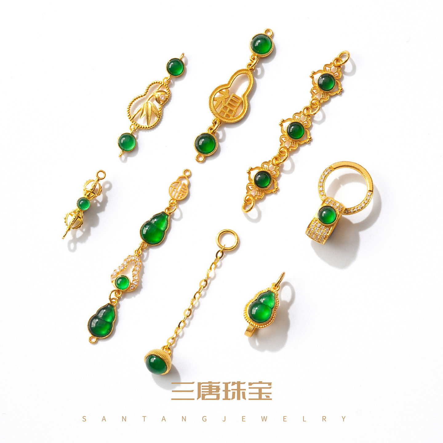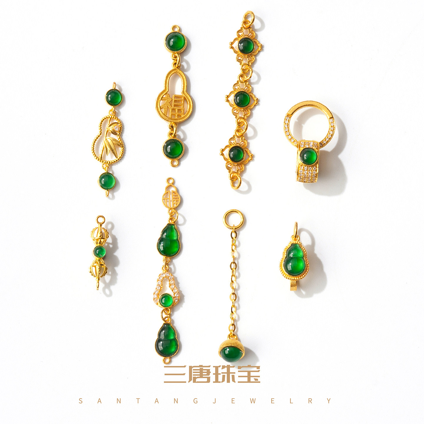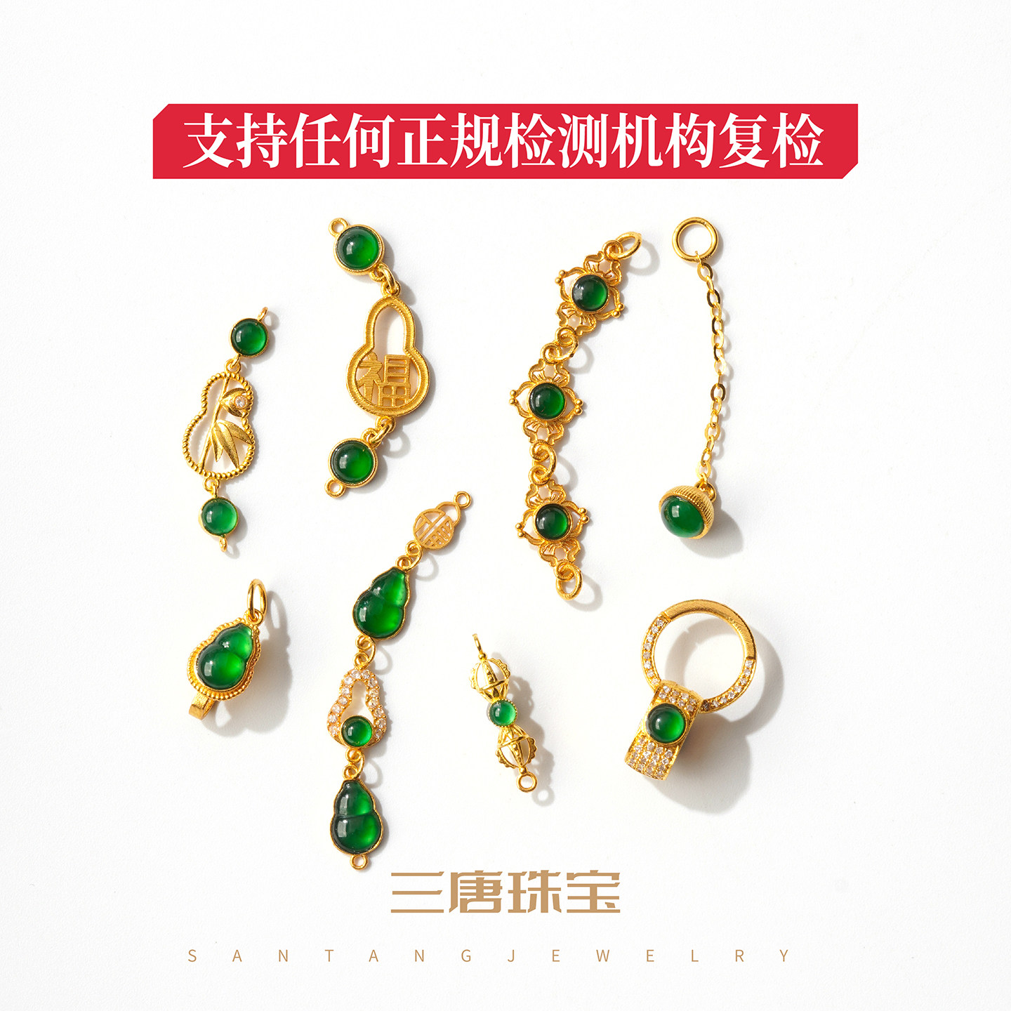 18k金配件diy古法金镶嵌翡翠钻石保险扣延长链手链手串珠宝配饰