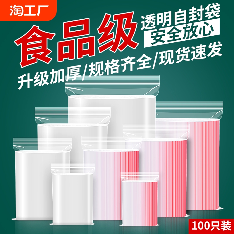 加厚透明自封袋子小号塑封口大号保鲜食品密封袋PE塑料包装袋家用