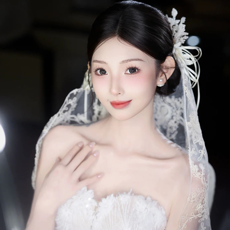 法式复古蕾丝蝴蝶结花边头纱婚纱结婚高级新娘头饰造型旅拍拍照