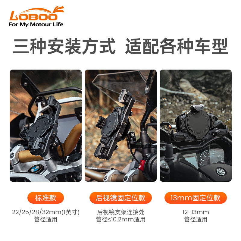 LOBOO萝卜摩托车手机导航支架无线充电模块减震防震摩旅装备配件