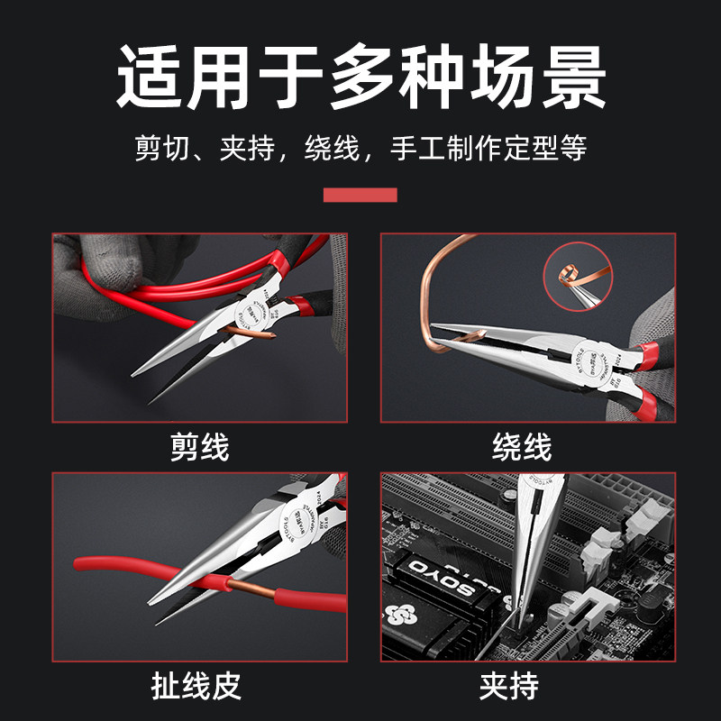 邦远BY13尖嘴钳5寸6寸小号精密超硬手工珠宝圆扁无牙弯嘴工业钳子