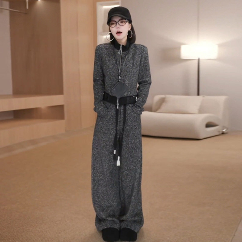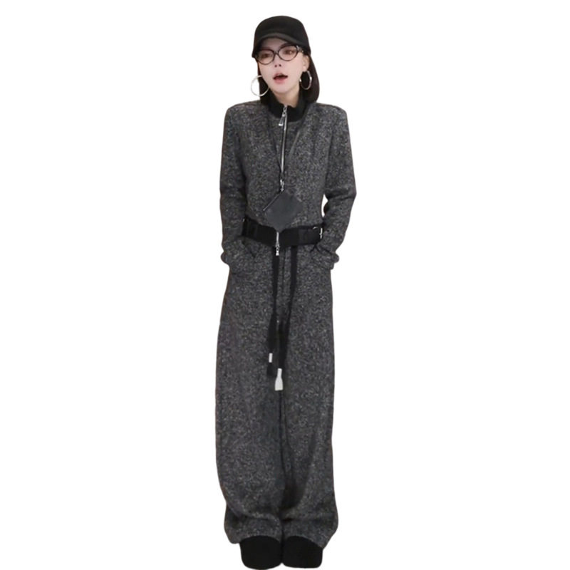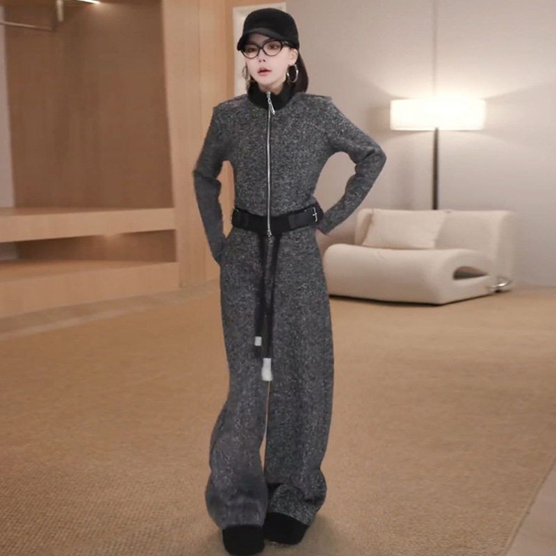 休闲韩系时尚运动套装女士秋冬加绒显瘦短款立领外套阔腿裤两件套