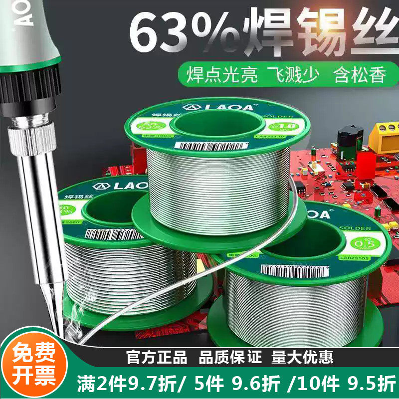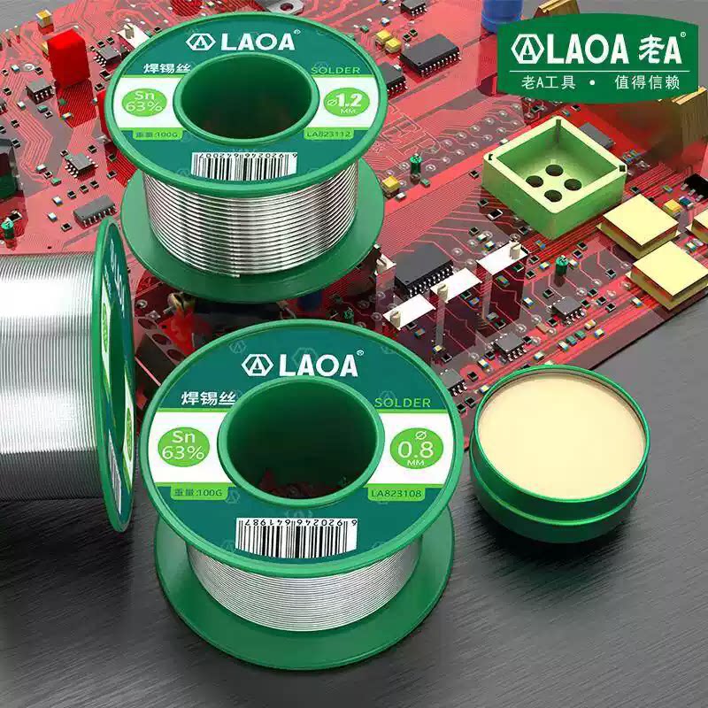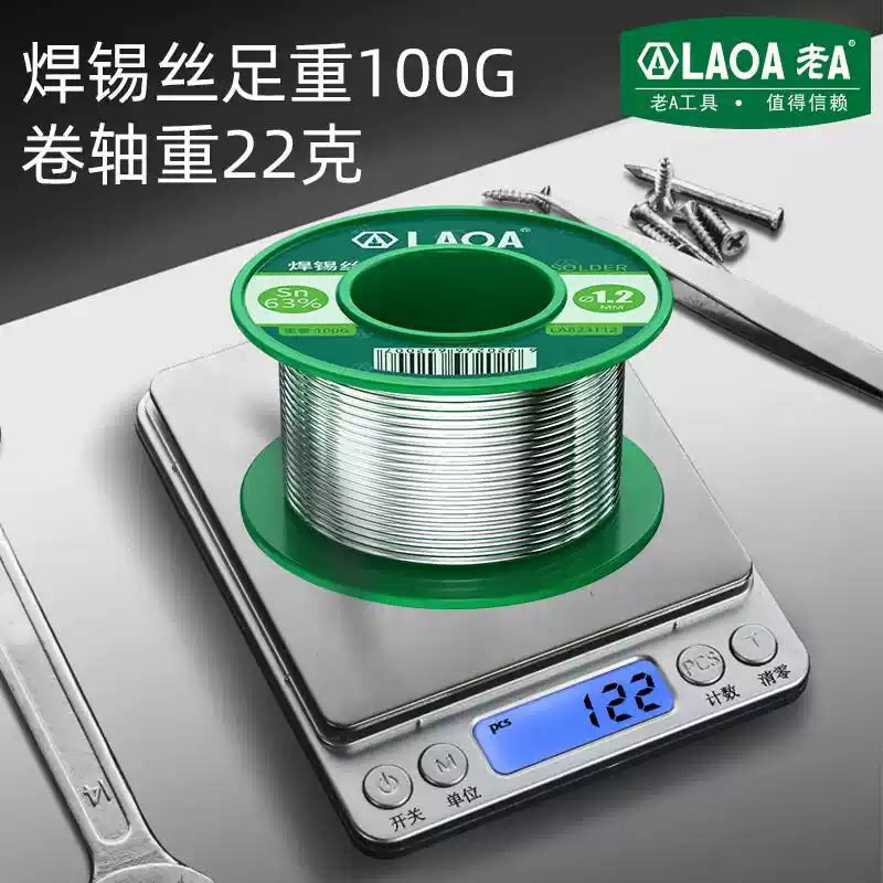 老A 100g高纯度含松香焊锡丝0.5/0.8/1.0/1.2mm免洗焊锡含锡量63%