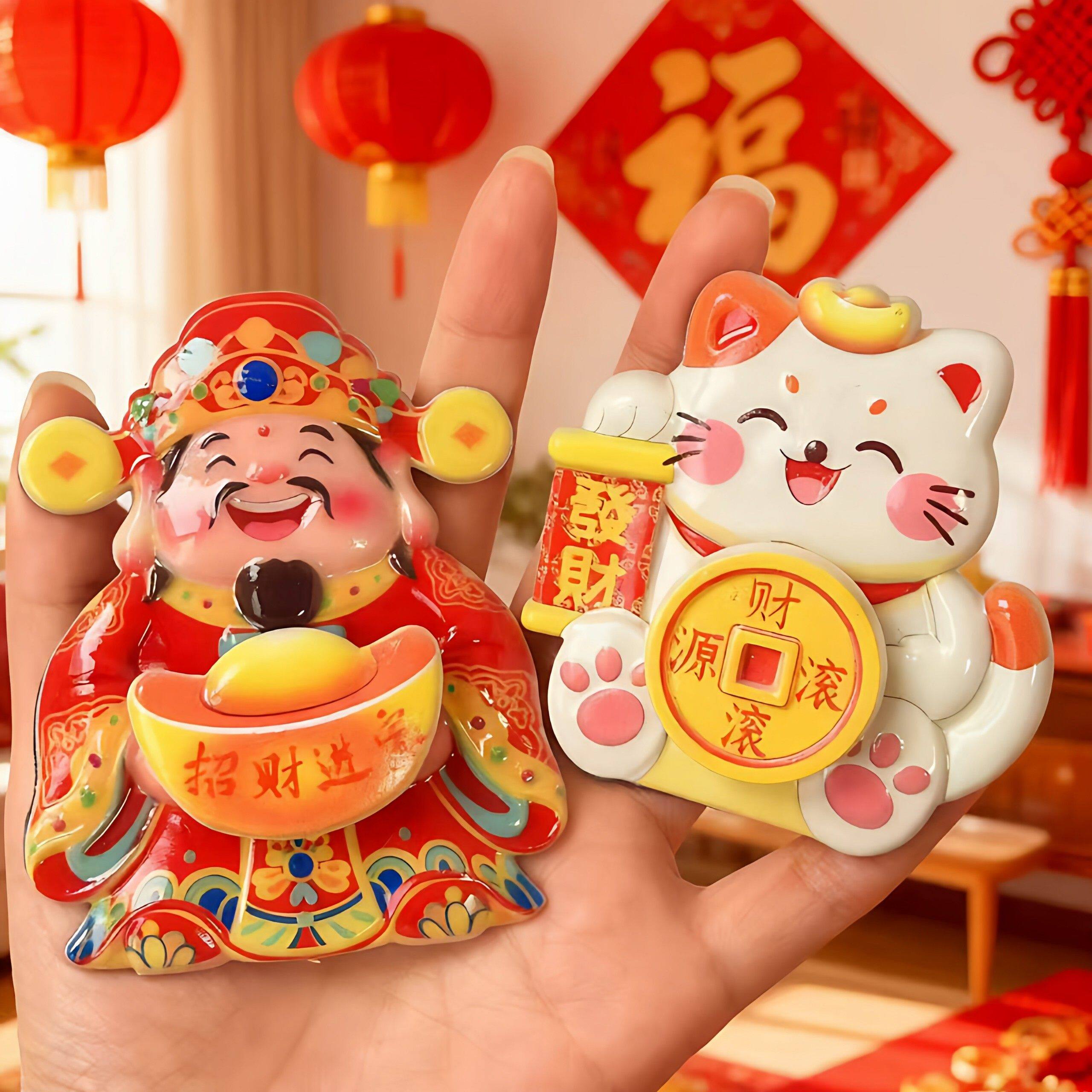 财神转钱冰箱贴陶瓷摇头招财纳福摆件饰品喜庆装饰贴招财猫冰箱贴