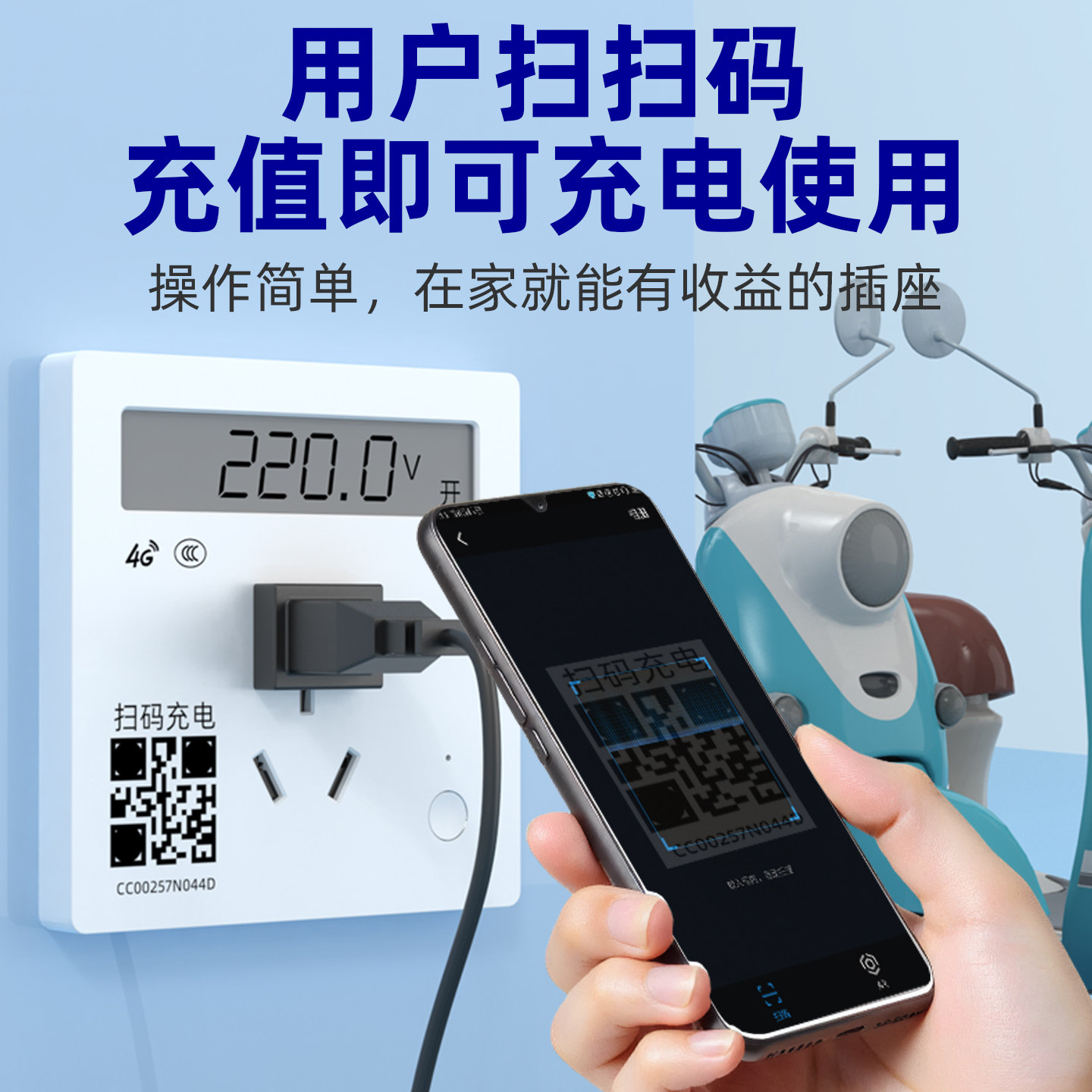 智能扫码充电插座电动车充电桩小区商场出共享收费4G蓝牙扫码插座
