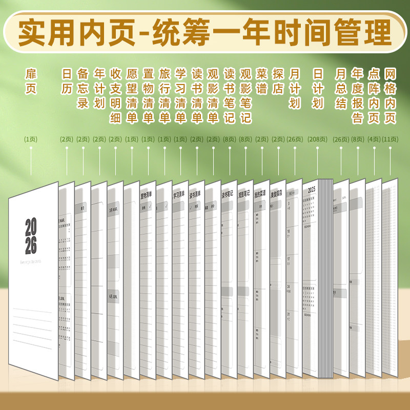 2026年日程本每日周计划本效率手册新款todolist高颜值手账本帐一日一页日历记事本学习工作记录笔记本子加厚